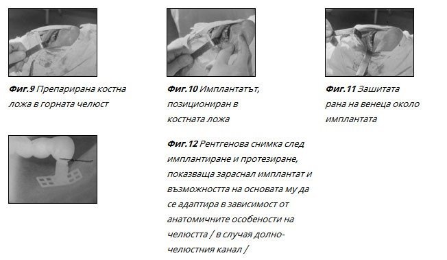4. Оперативната техника, техниката и технологията на изработване на имплантата са леки и могат да се овладеят от всеки стоматолог в окръжно здравно заведение, съответно от всеки зъботехник.