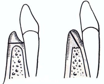 Gingivectomia simplex – ляво с непрекъснат разрез, дясно с фестониран
