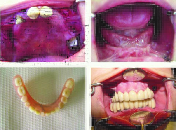 It was about a 65-year old woman with entirely edentulous mandibular, who had been wearing a total mandibular plate mobile denture but could not get used to it.