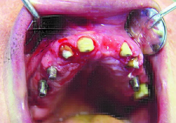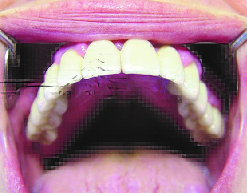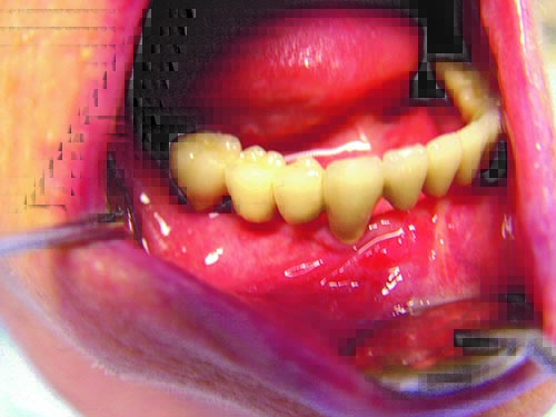 View of the mandible with a metaloceramic bridge fixed in 1998.